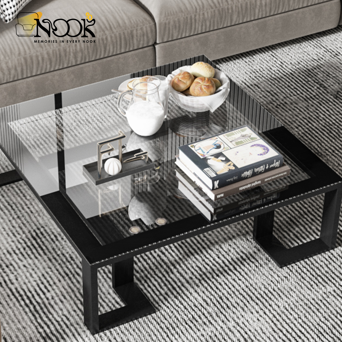 ترابيزة وسط مصنوعة من شاسيه حديد و سطح زجاج
