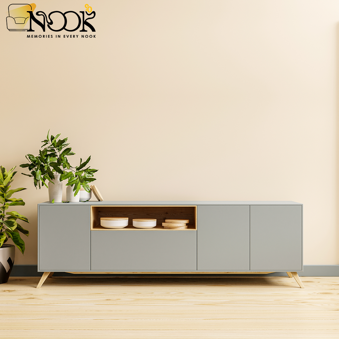 وحدة تلفزيون مكونة من4ضلفة ورف مصنوعة من ام.دى.اف اسبانى