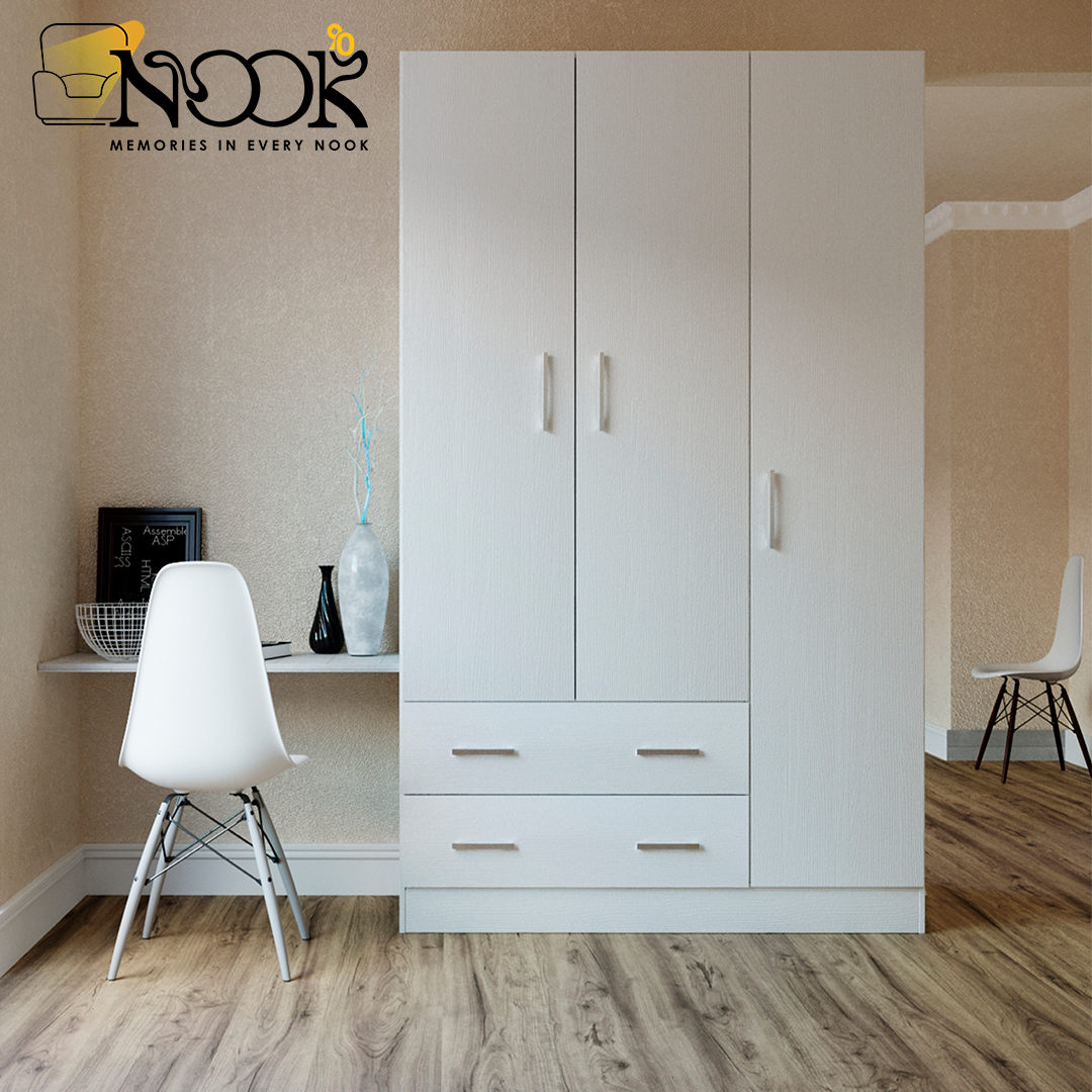 عمق(60CM) دولاب مكون من 3 ضلفة مفصلي 2 ادراج مصنوع من خشب الكونتر الطبيعى